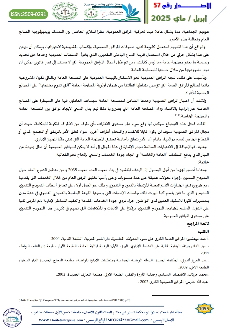 ـ أحمد أجعون، المرفق العمومي في الدستور المغربي”، سلسلة الدراسات الدستورية والسياسية، العدد الخامس.