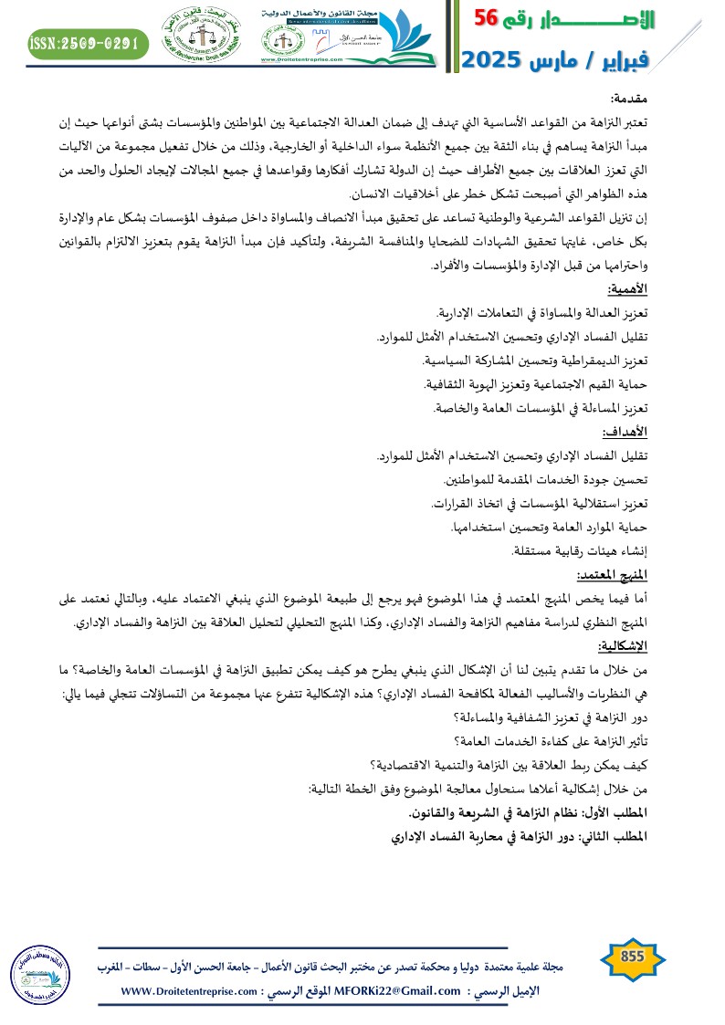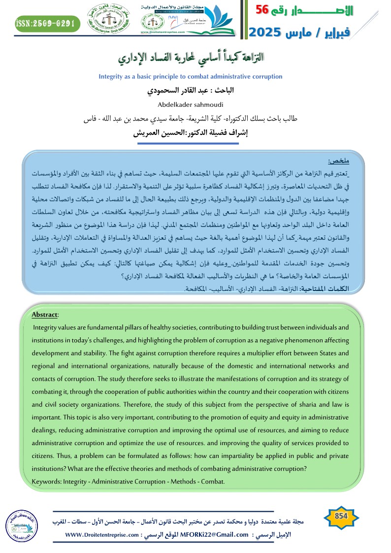 النزاهة كمبدأ أساسي لمحاربة الفساد الإداري - الباحث : عبد القادر السحمودي