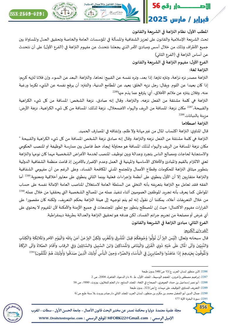 الفرع الأول: مفهوم النزاهة في الشريعة والقانون