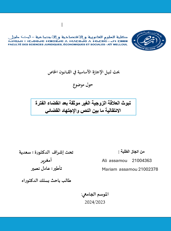 بحث لنيـل الإجازة الأساسية في القـــانــون الخاص
