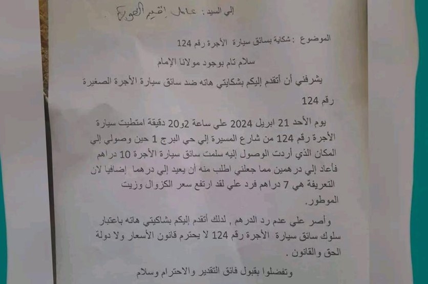 تعليق حول شكاية بخصوص سيارة الاجرة وتوضيح الخطأ القانوني فيها.- يوسف بنشهيبة