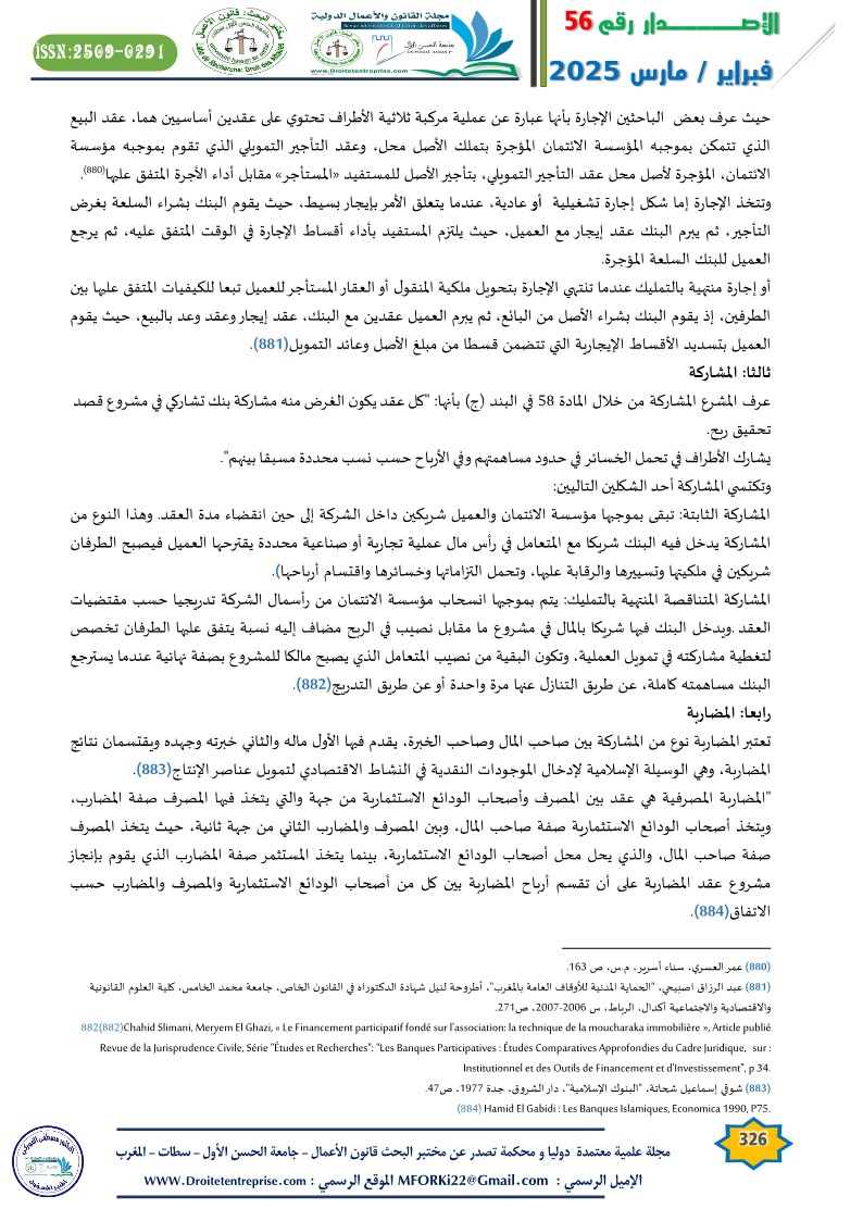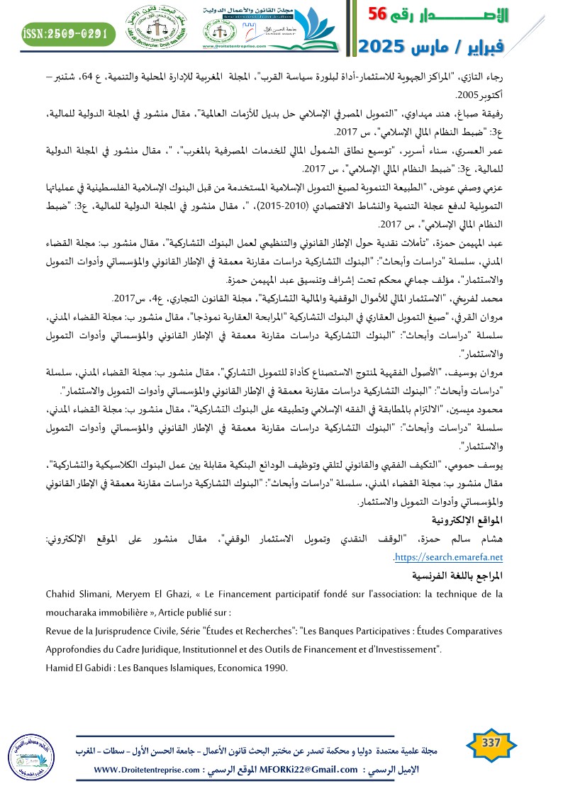 Chahid Slimani, Meryem El Ghazi, « Le Financement participatif fondé sur l’association: la technique de la moucharaka immobilière », Article publié sur :