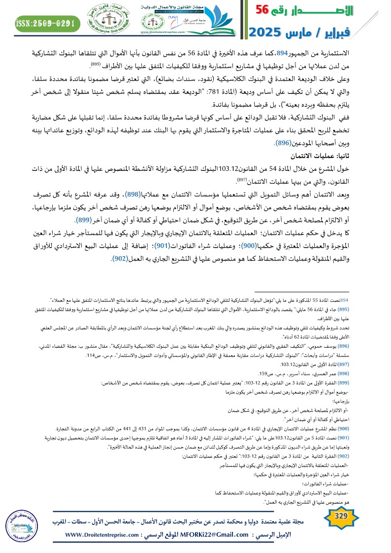 خول المشرع من خلال المادة 54 من القانون103.12البنوك التشاركية مزاولة الأنشطة المنصوص عليها في المادة الأولى من ذات القانون، والتي من بينها عمليات الائتمان( ).
