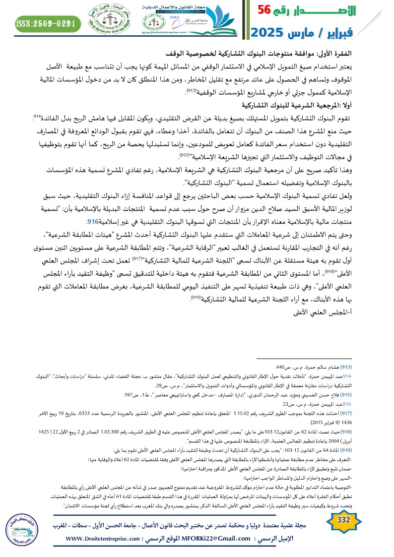 أولا :المرجعية الشرعية للبنوك التشاركية