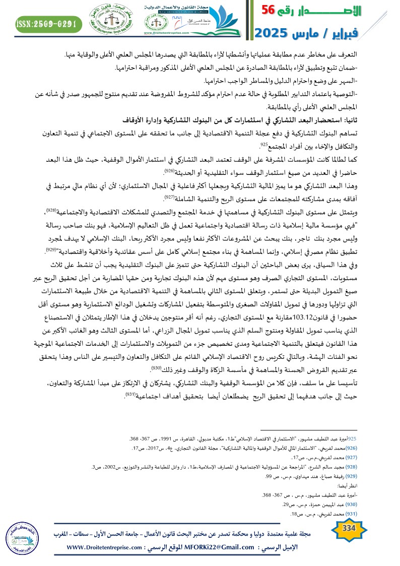 ثانيا: استحضار البعد التشاركي في استثمارات كل من البنوك التشاركية وإدارة الأوقاف
