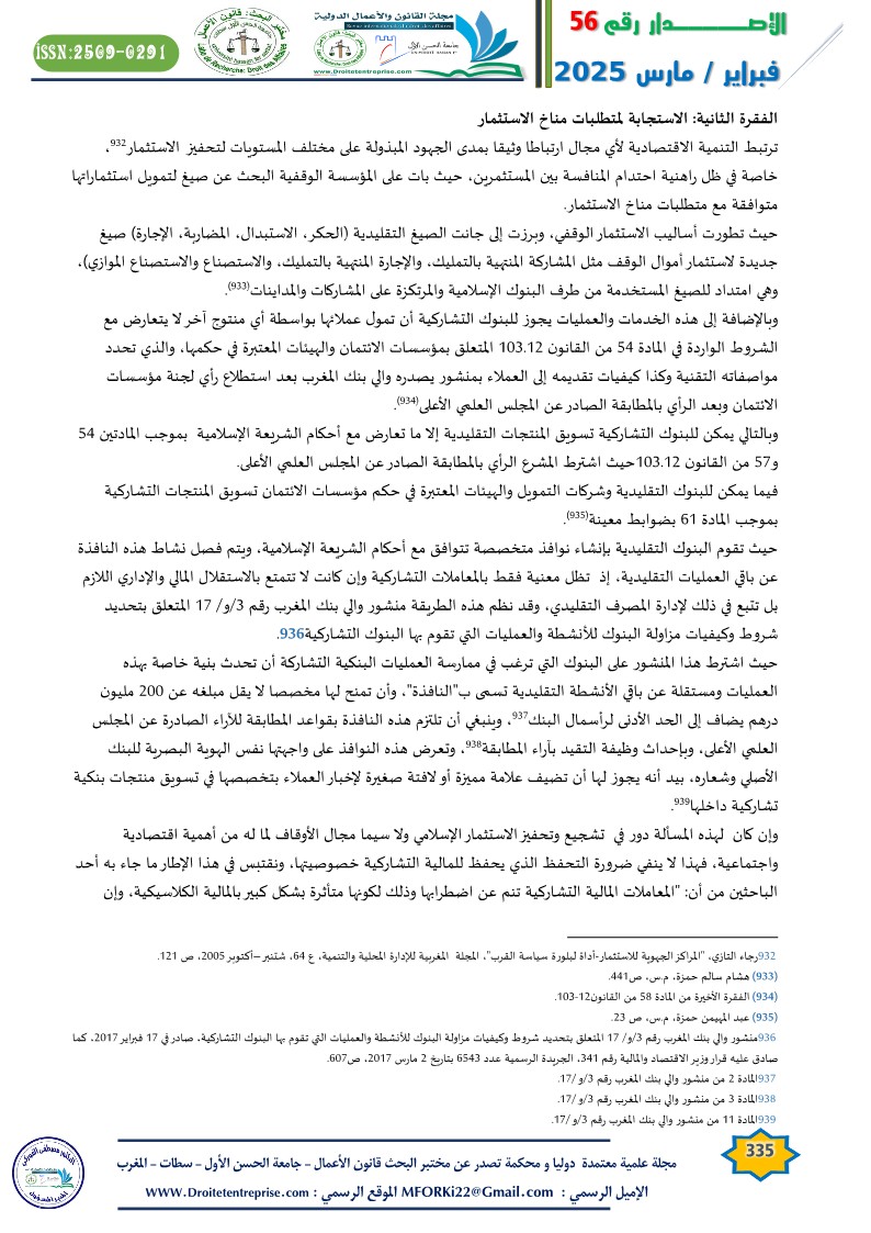 – كيف يمكن الاستفادة من منتوجات البنوك التشاركية لتمويل الاستثمارات الوقفية بشكل يحفظ خصوصية الوقف ويستجيب لمتطلبات مناخ الاستثمار؟