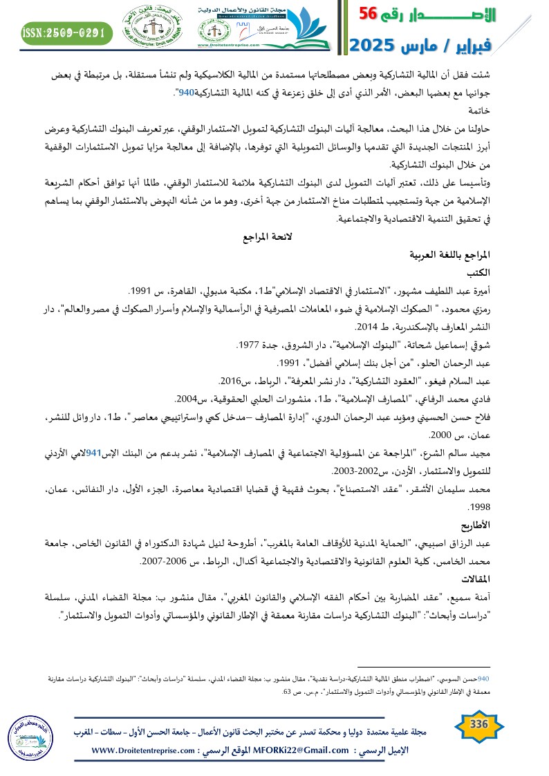 محمد لفريخي، “الاستثمار المالي للأموال الوقفية والمالية التشاركية”، مجلة القانون التجاري، ع4، س2017.