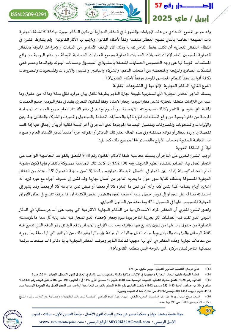 الدفاتر الإلزامية في التشريعات الاتحادية والمقارنة