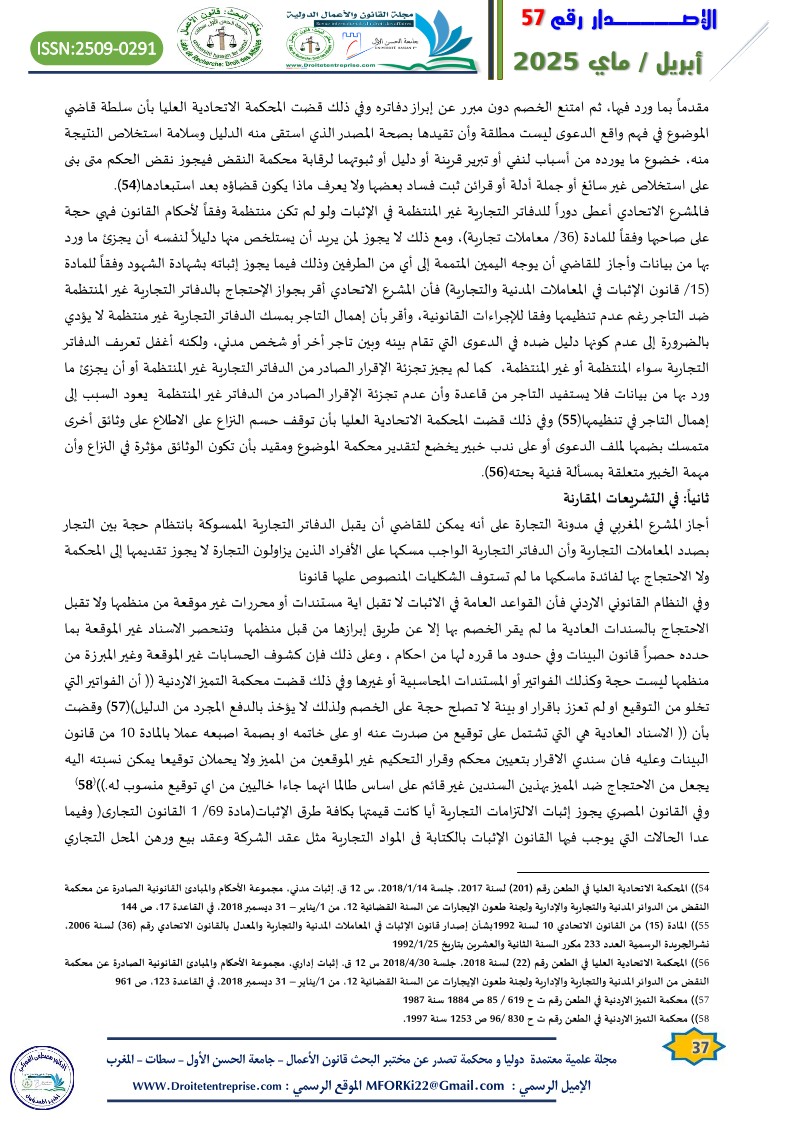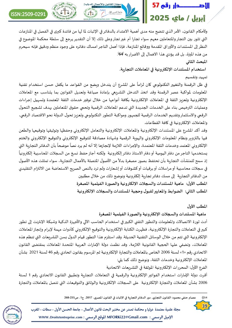 حجية الدفاتر التجارية الإلكترونية في الإثبات أمام القضاء دراسة تحليلية مقارنة