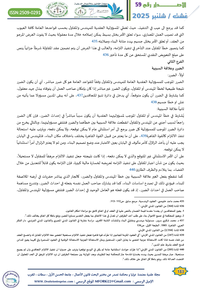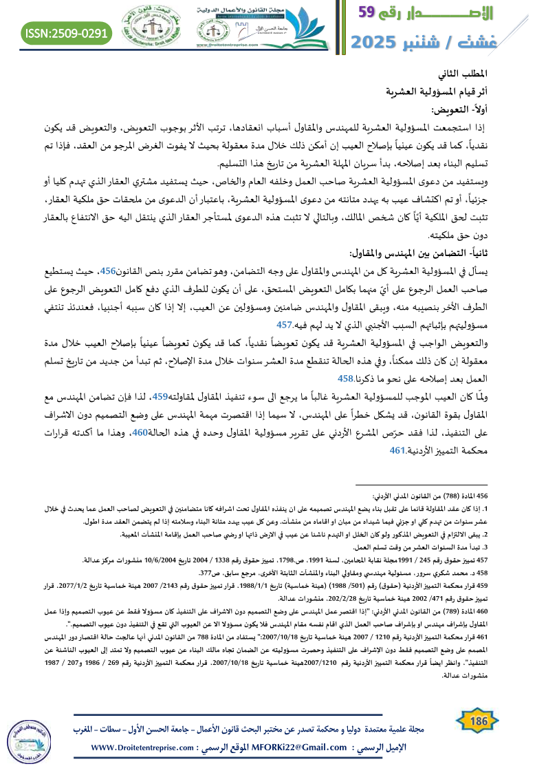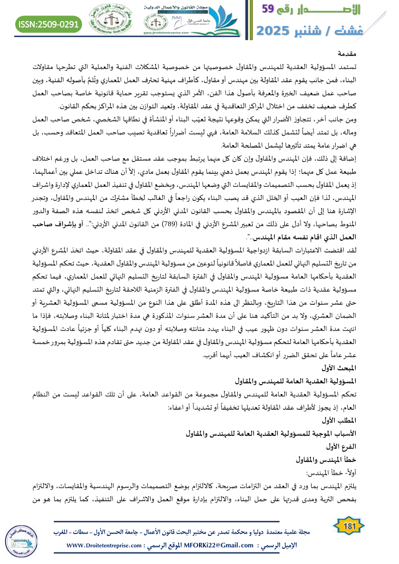مسؤولية المهندس والمقاول العشرية