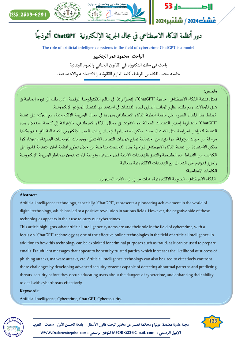 دور أنظمة الذكاء الاصطناعي في مجال الجريمة الإلكترونية ChatGPT – نموذجًا الباحث: محمود عمر الجخبير