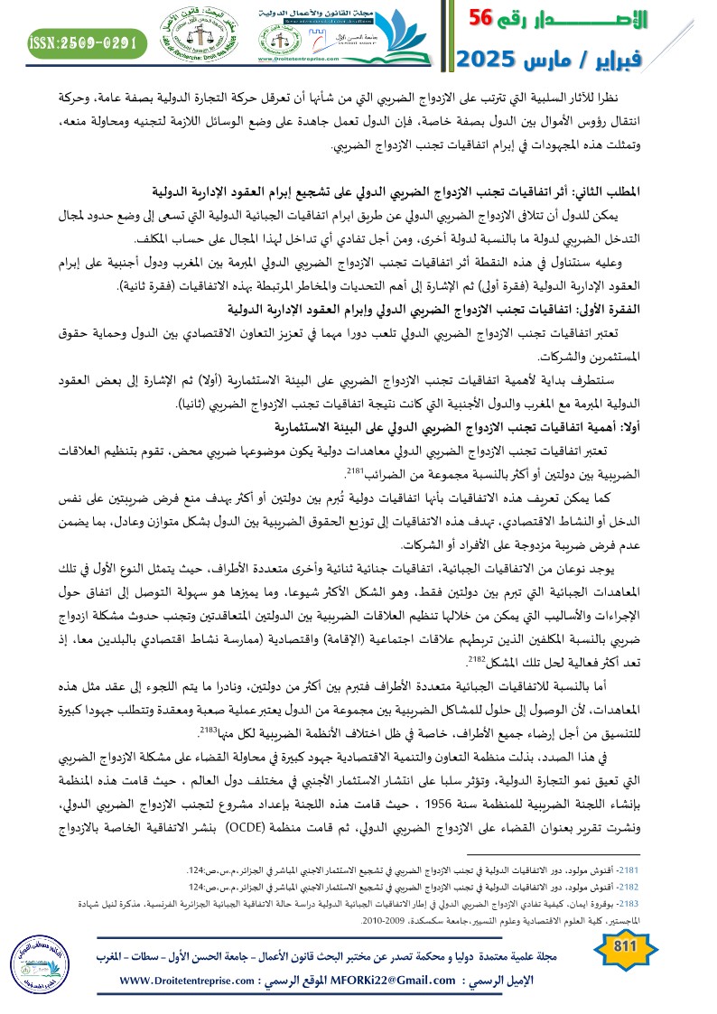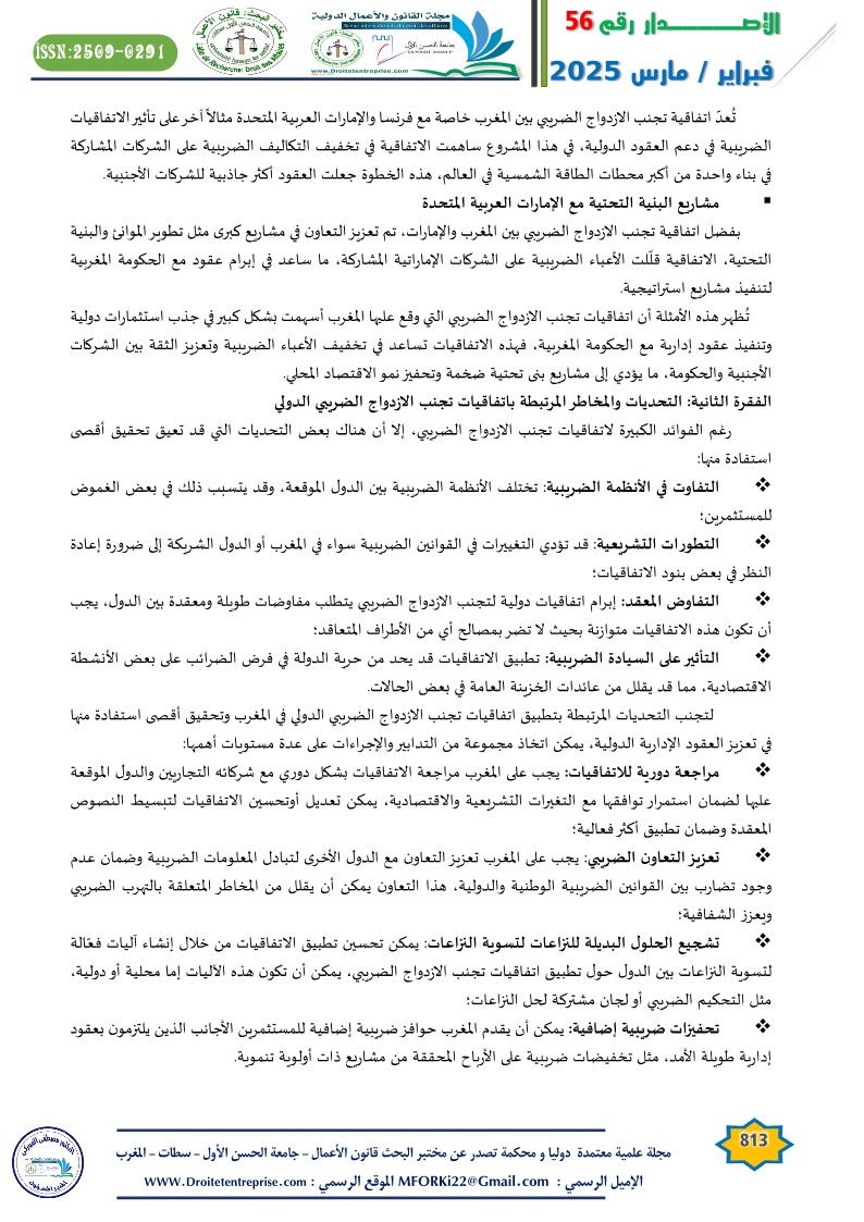 دور اتفاقيات تجنب الازدواج الضريبي الدولي في تشجيع العقود الإدارية الدولية بالمغرب – الدكتورة : مريم زان