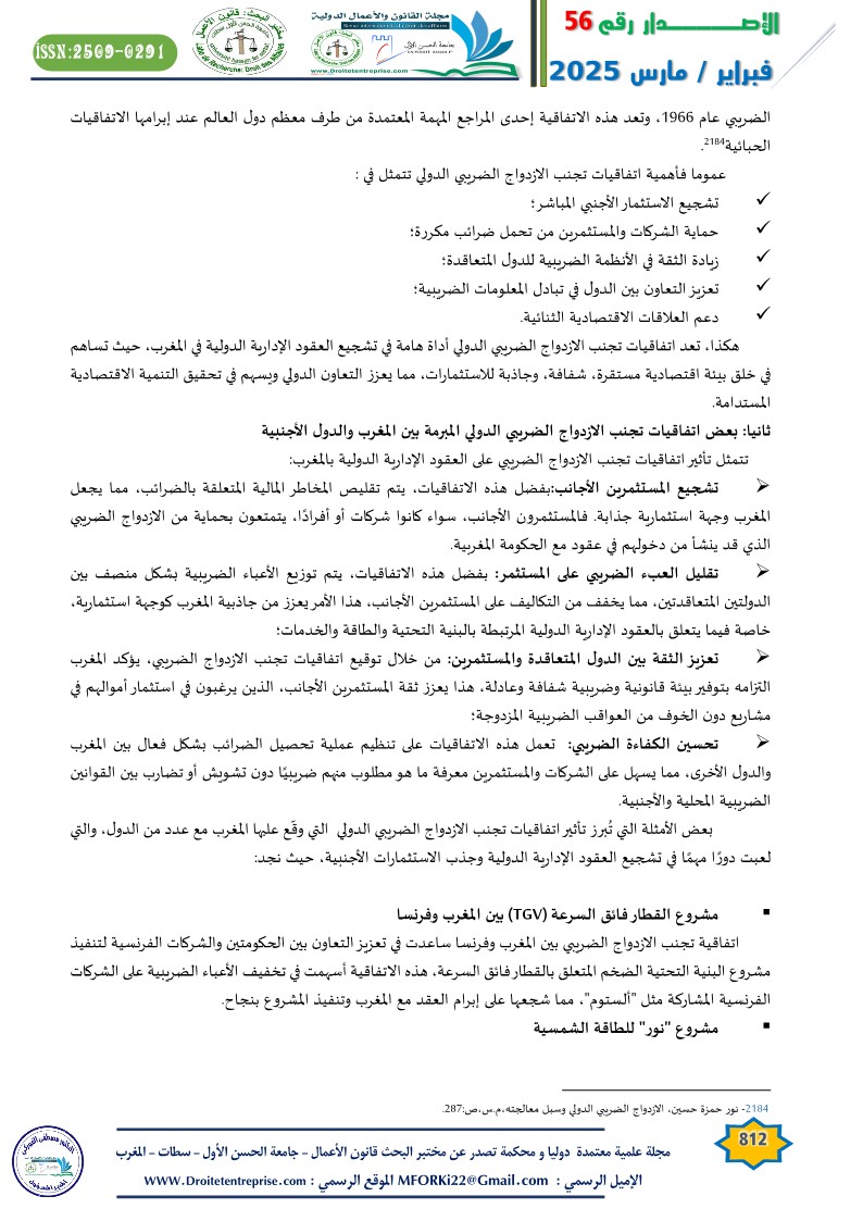 دور اتفاقيات تجنب الازدواج الضريبي الدولي في تشجيع العقود الإدارية الدولية بالمغرب