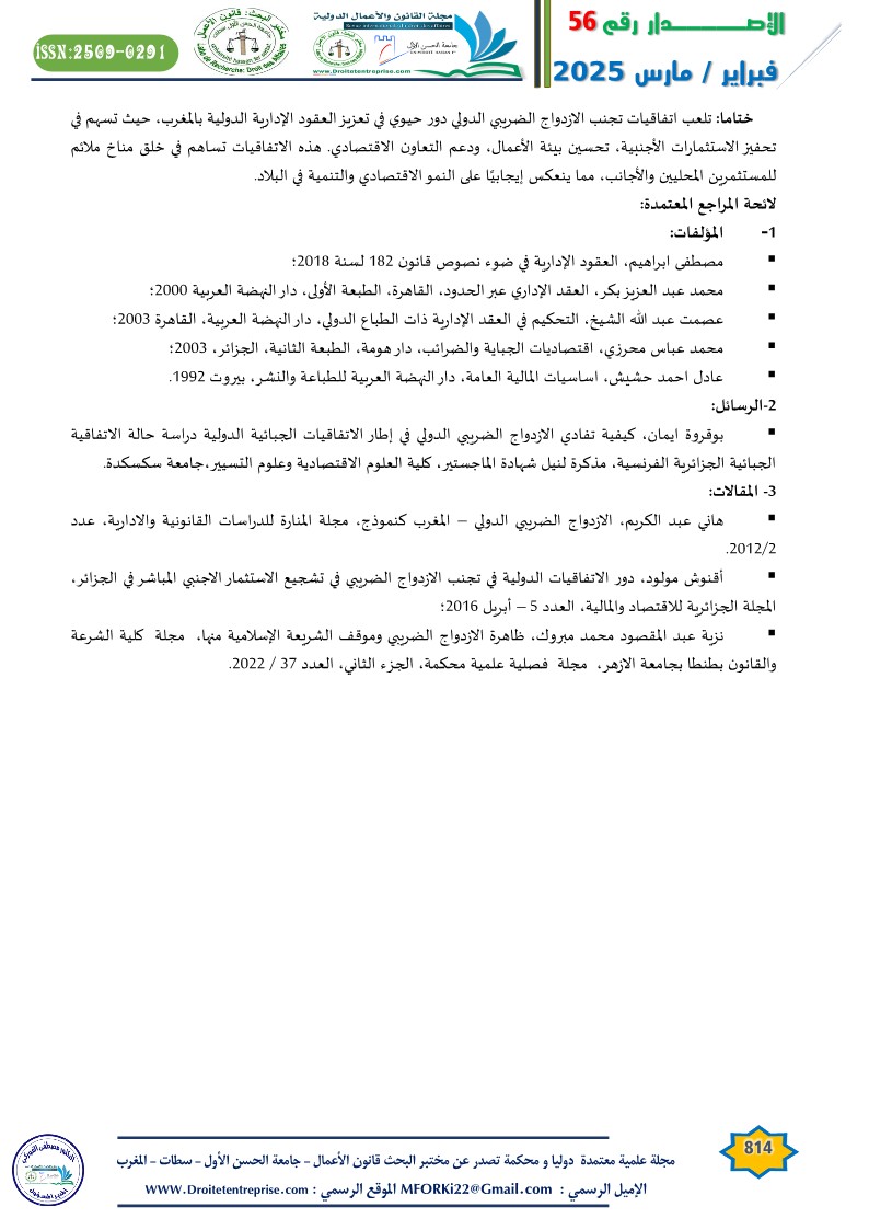 هاني عبد الكريم، الازدواج الضريبي الدولي – المغرب كنموذج، مجلة المنارة للدراسات القانونية والادارية، عدد 2/2012.