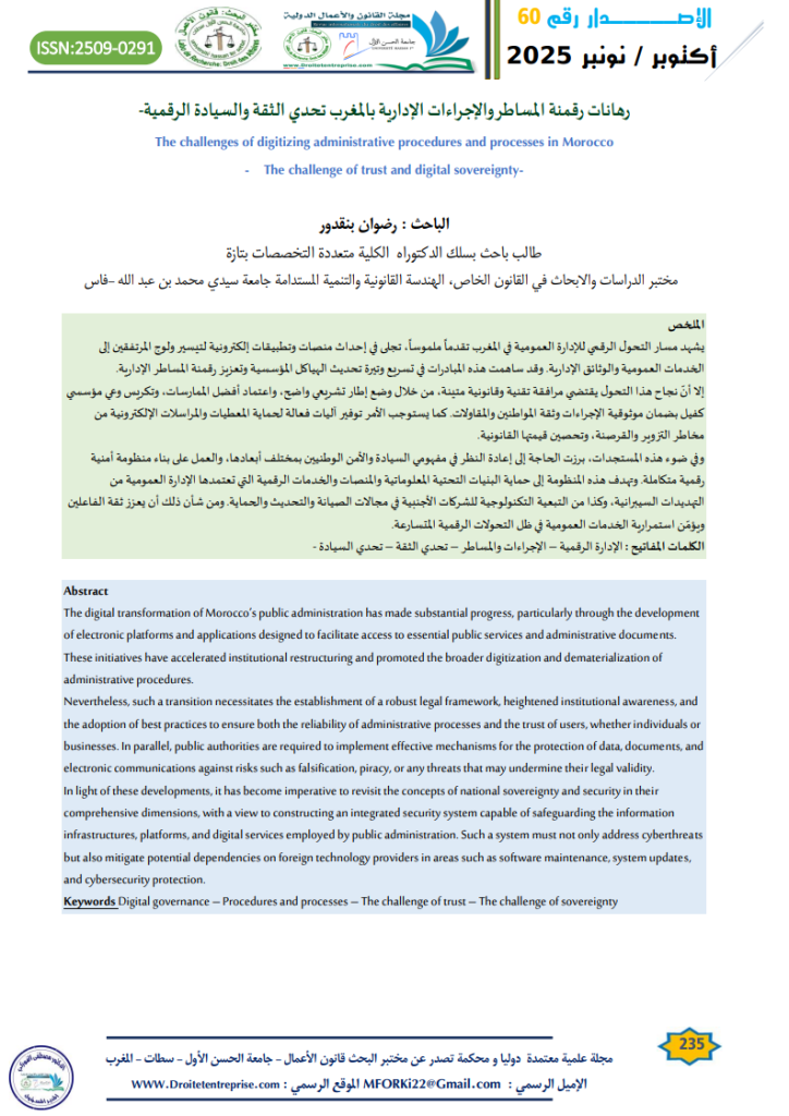 رهانات رقمنة المساطر والإجراءات الإدارية بالمغرب تحدي الثقة والسيادة الرقمية- الباحث : رضوان بنقدور