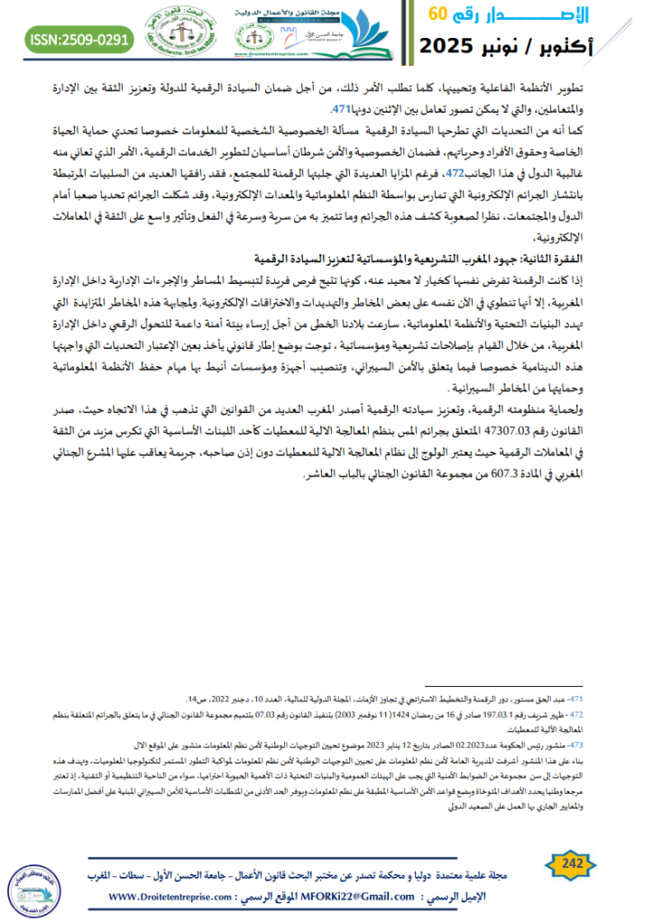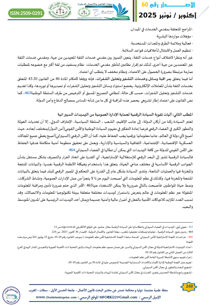 - – ياسين مليح، السيادة الرقمية… تجلياتها وممكنات تحقيقها بالمغرب، مجلة القانون والأعمال الدولية، الإصدار 36 اكتوبر 2021، ص 224. ↑