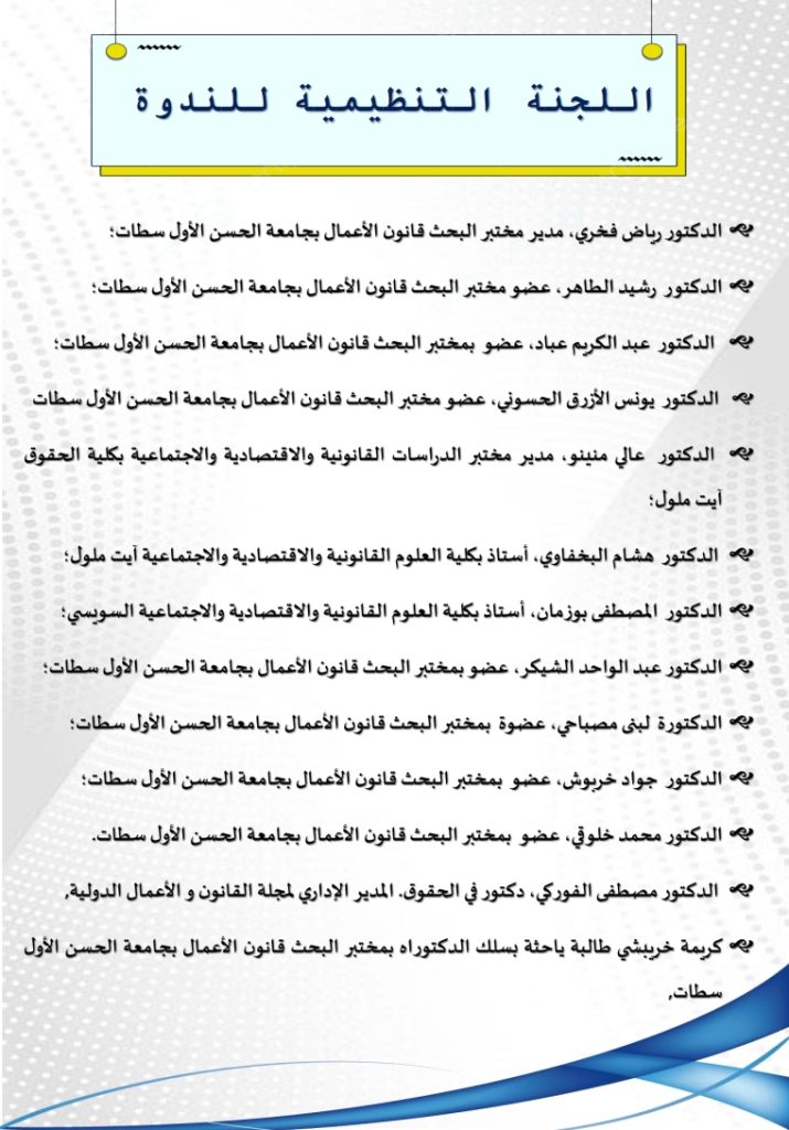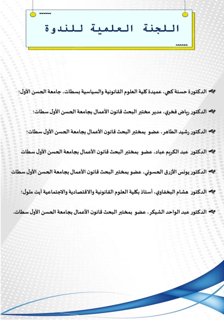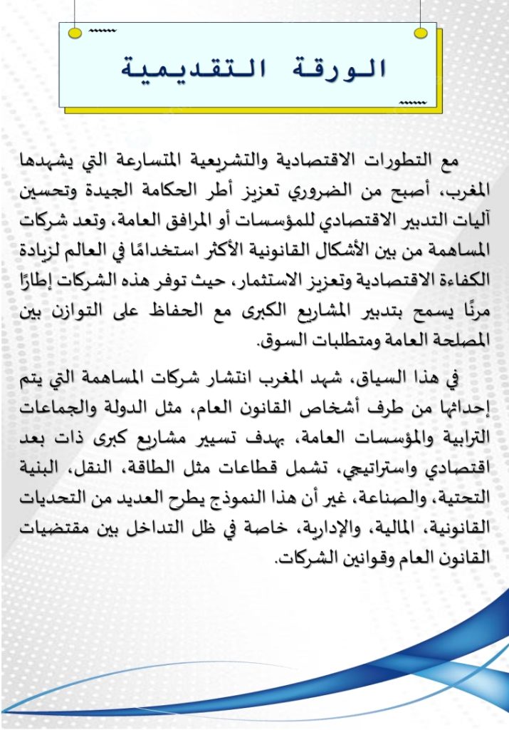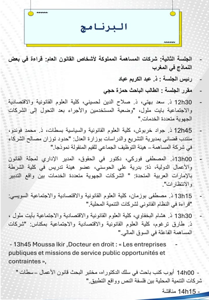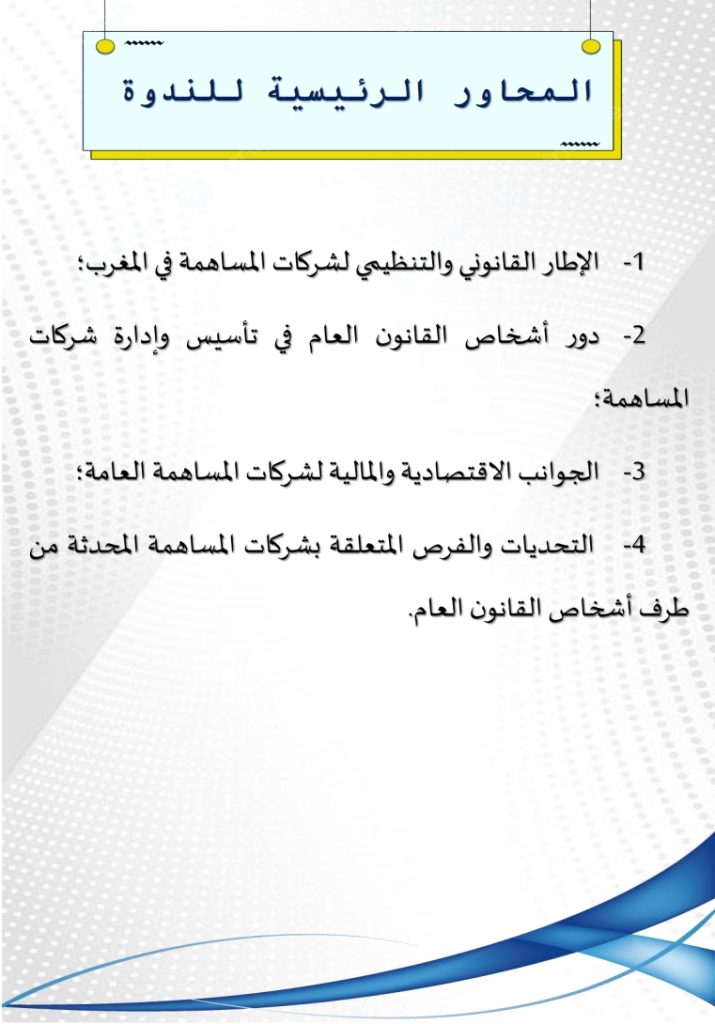 شركات المساهمة المحدثة من طرف اشخاص القانون العام في التشريع المغربي _ موضوع ندوة علمية من تنظيم كلية العلوم القانونية و السياسية مختبر البحث قانون الأعمال بسطات