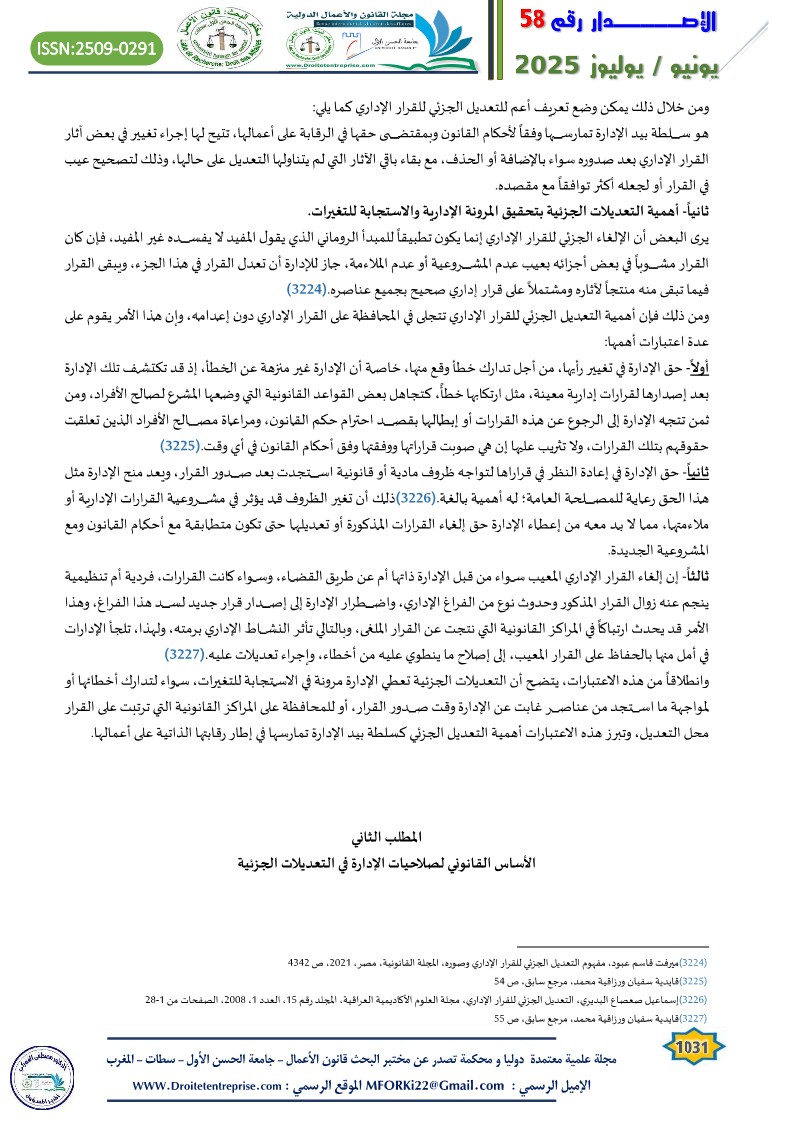 - () ميرفت قاسم عبود، مفهوم التعديل الجزئي للقرار الإداري وصوره، المجلة القانونية، مصر، 2021، ص 4349 ↑