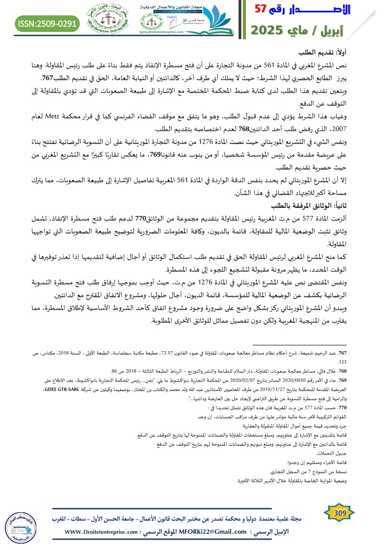إلا أن المشرع الموريتاني لم يحدد بنفس الدقة الواردة في المادة 561 المغربية تفاصيل الإشارة إلى طبيعة الصعوبات، مما يترك مساحة أكبر للاجتهاد القضائي في هذا الشأن.