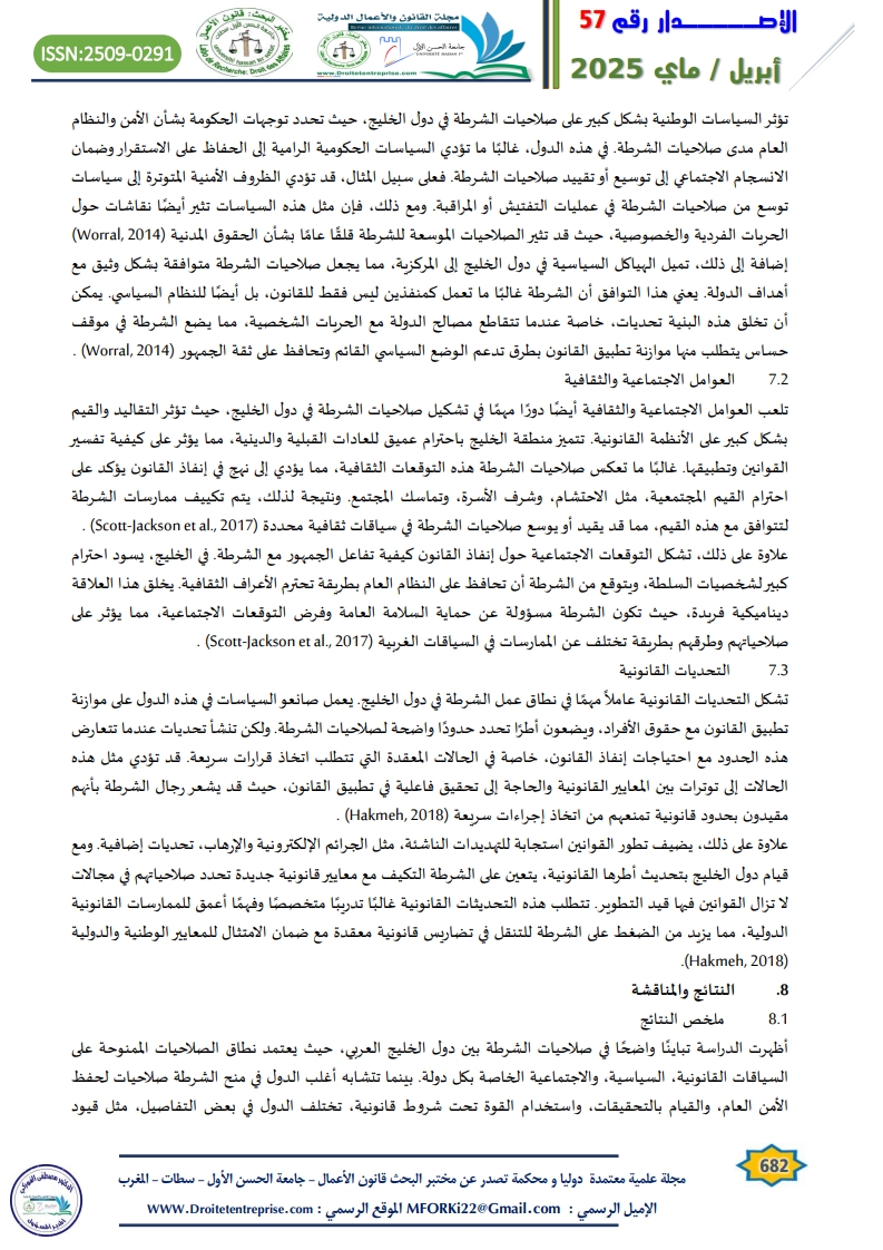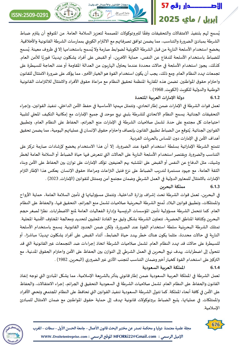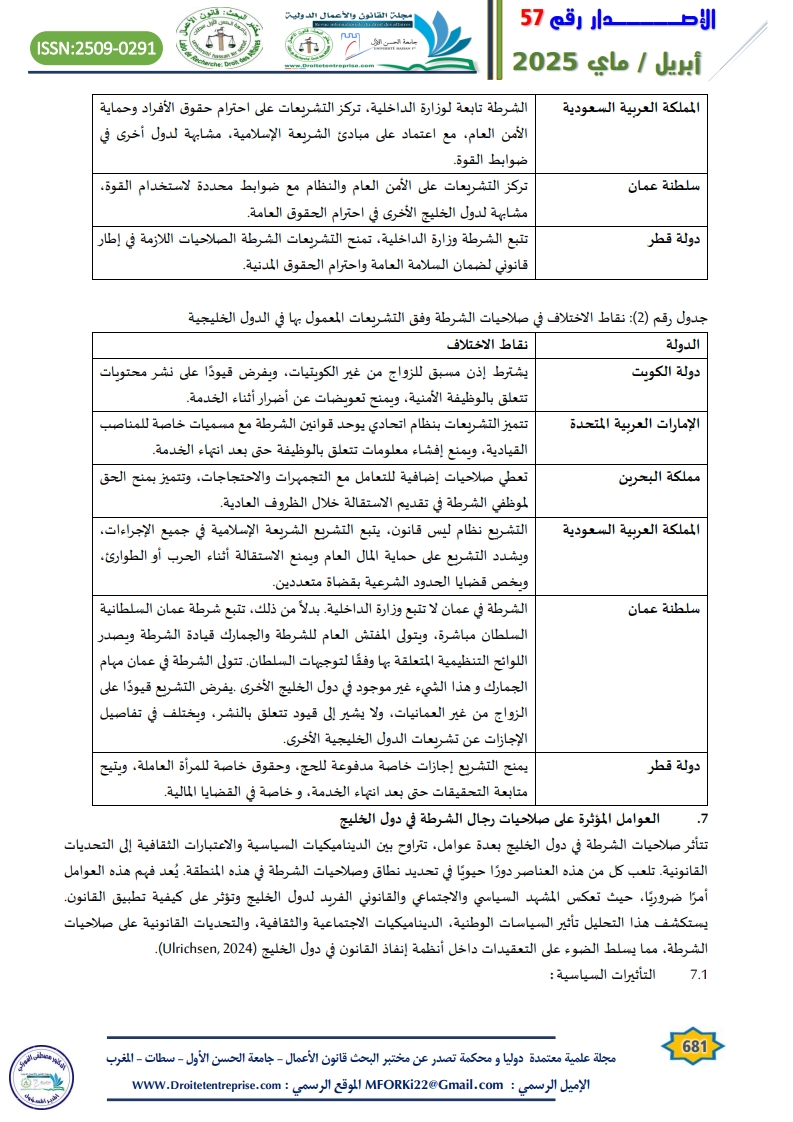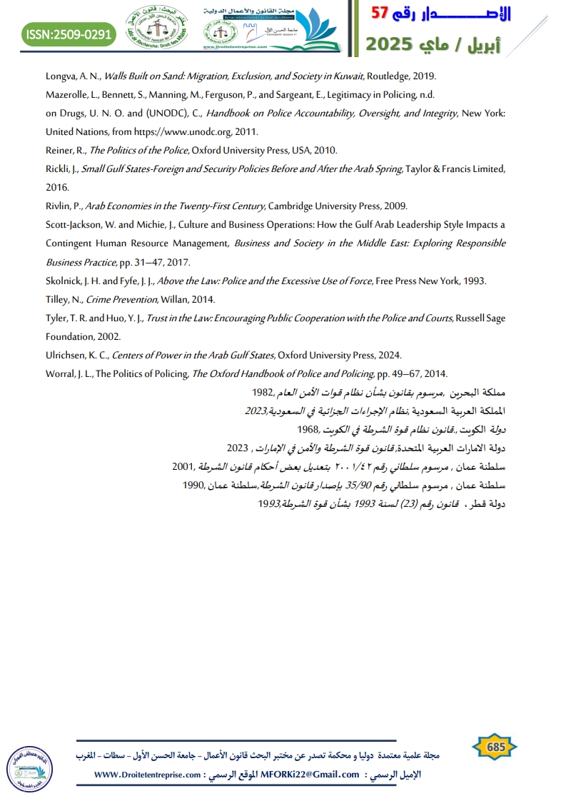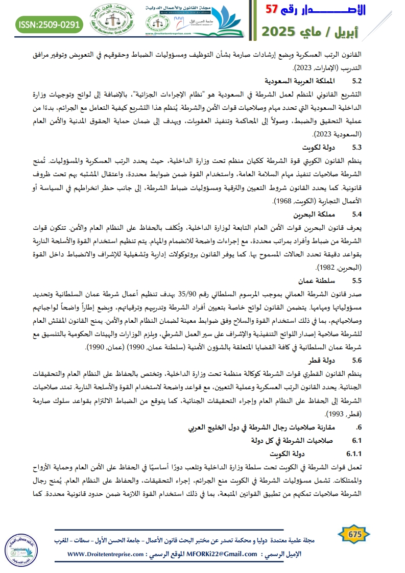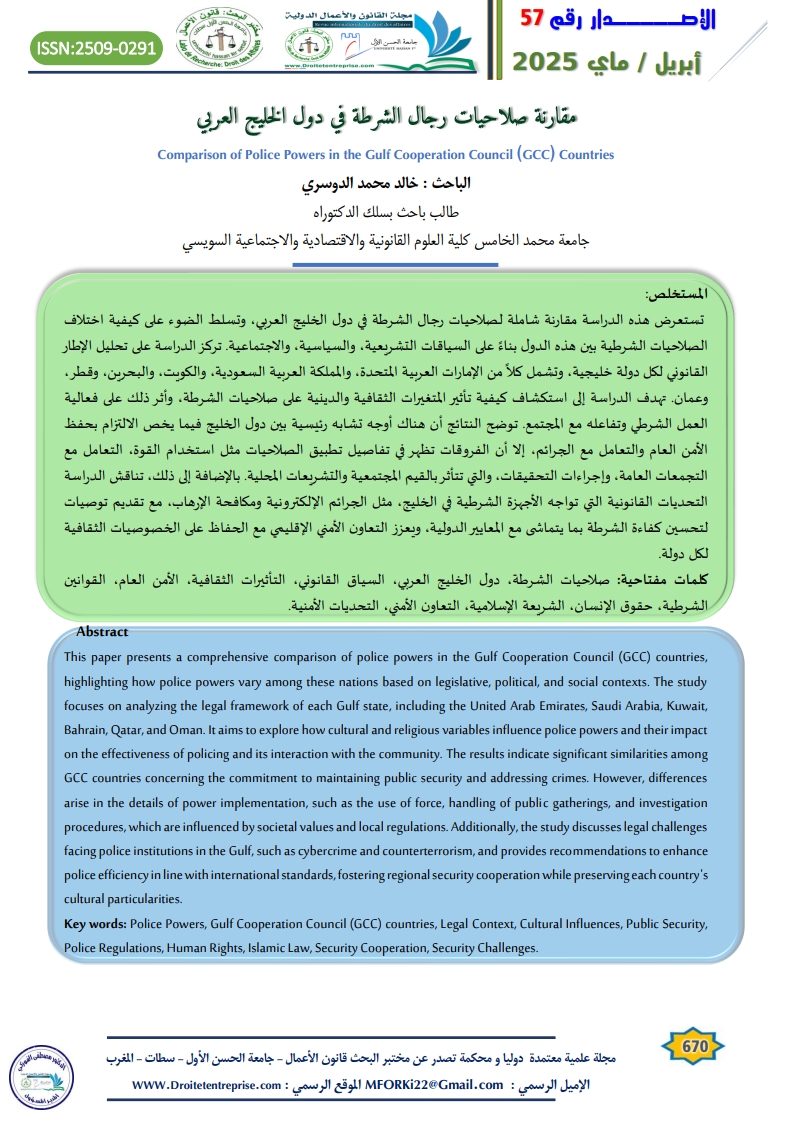 Key words: Police Powers, Gulf Cooperation Council (GCC) countries, Legal Context, Cultural Influences, Public Security, Police Regulations, Human Rights, Islamic Law, Security Cooperation, Security Challenges.