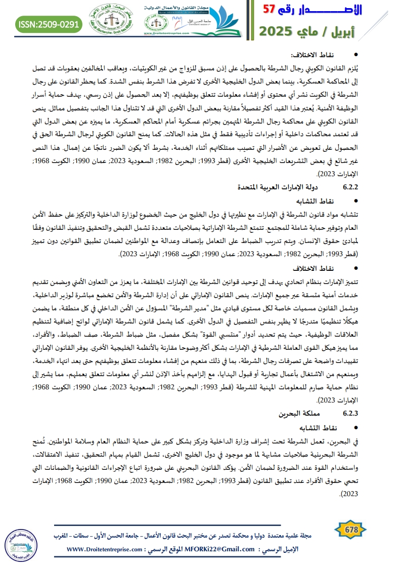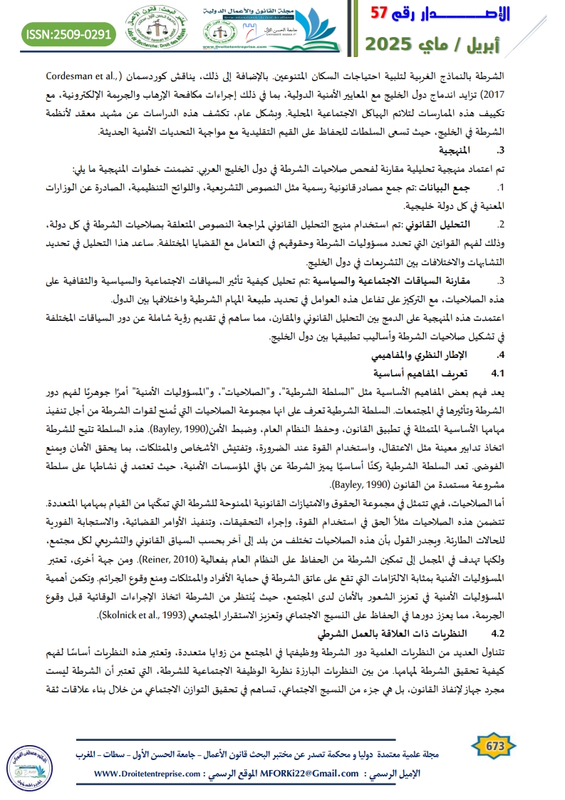اعتمدت هذه المنهجية على الدمج بين التحليل القانوني والمقارن، مما ساهم في تقديم رؤية شاملة عن دور السياقات المختلفة في تشكيل صلاحيات الشرطة وأساليب تطبيقها بين دول الخليج.