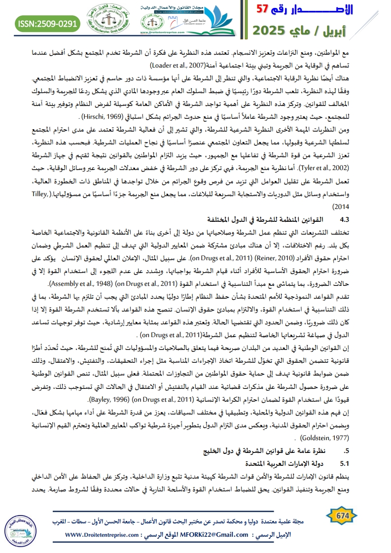 إن فهم هذه القوانين الدولية والمحلية، وتطبيقها في مختلف السياقات، يعزز من قدرة الشرطة على أداء مهامها بشكل فعّال، ويضمن احترام الحقوق المدنية، ويعكس مدى التزام الدول بتطوير أجهزة شرطية تواكب المعايير العالمية وتحترم القيم الإنسانية (Goldstein, 1977) .