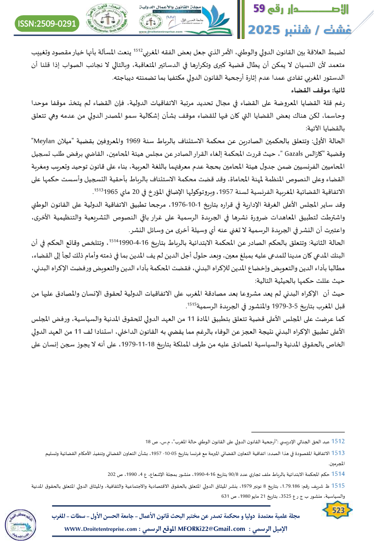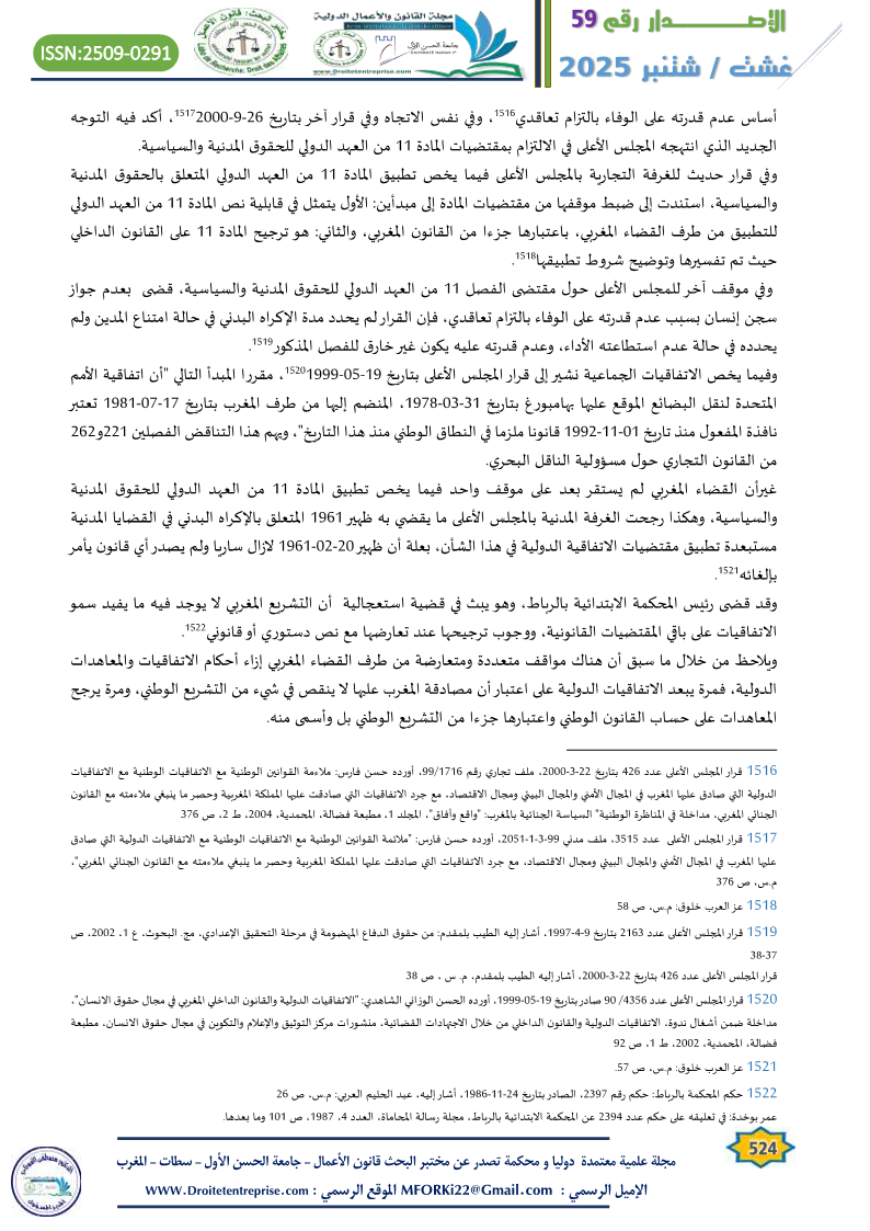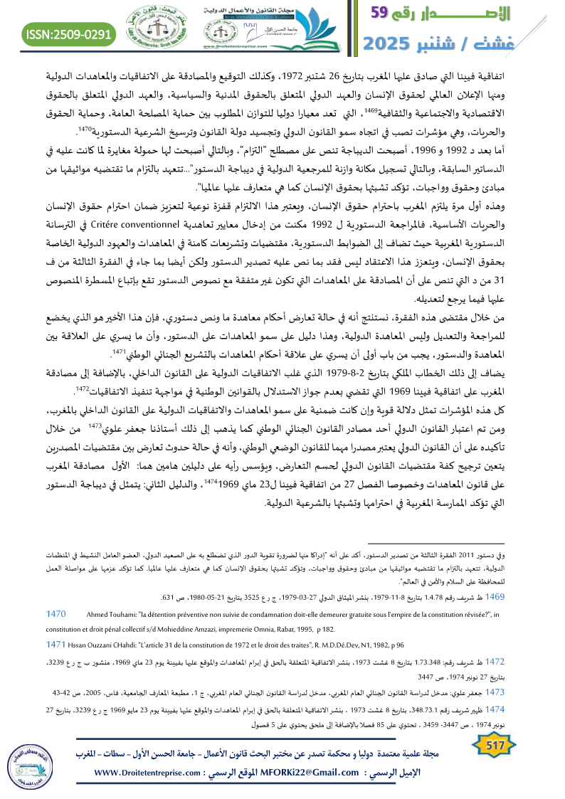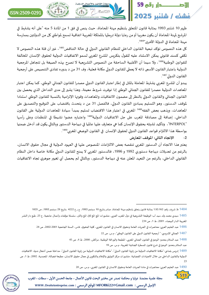 - الجناتي الإدريسي: ” أرجحية القانون الدولي على القانون الوطني”، م.س، ص 22 ↑