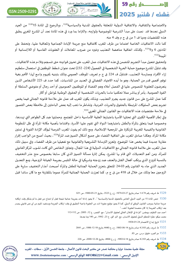 - حسن فارس: “ملاءمة القانون الجنائي مع الاتفاقيات الدولية في مجال القانون الجنائي”، م.س، ص 230-236 ↑