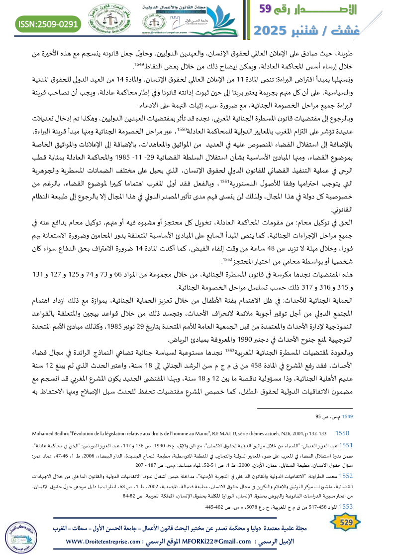 - محمد ليديدي: “المحاكمة العادلة من خلال المواثيق الدولية لحقوق الإنسان”، مجلة الملحق القضائي، ع 25، 1992، ص77 ↑
