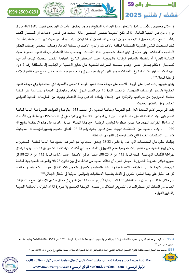 - محمد عبد النبوي:”مدى ملائمة قانون المسطرة الجنائية المغربي الجديد للمواثيق الدولية لحقوق الانسان”، مجلة المناهج، ع مزدوج 5-6، 2004، ص 4 ↑