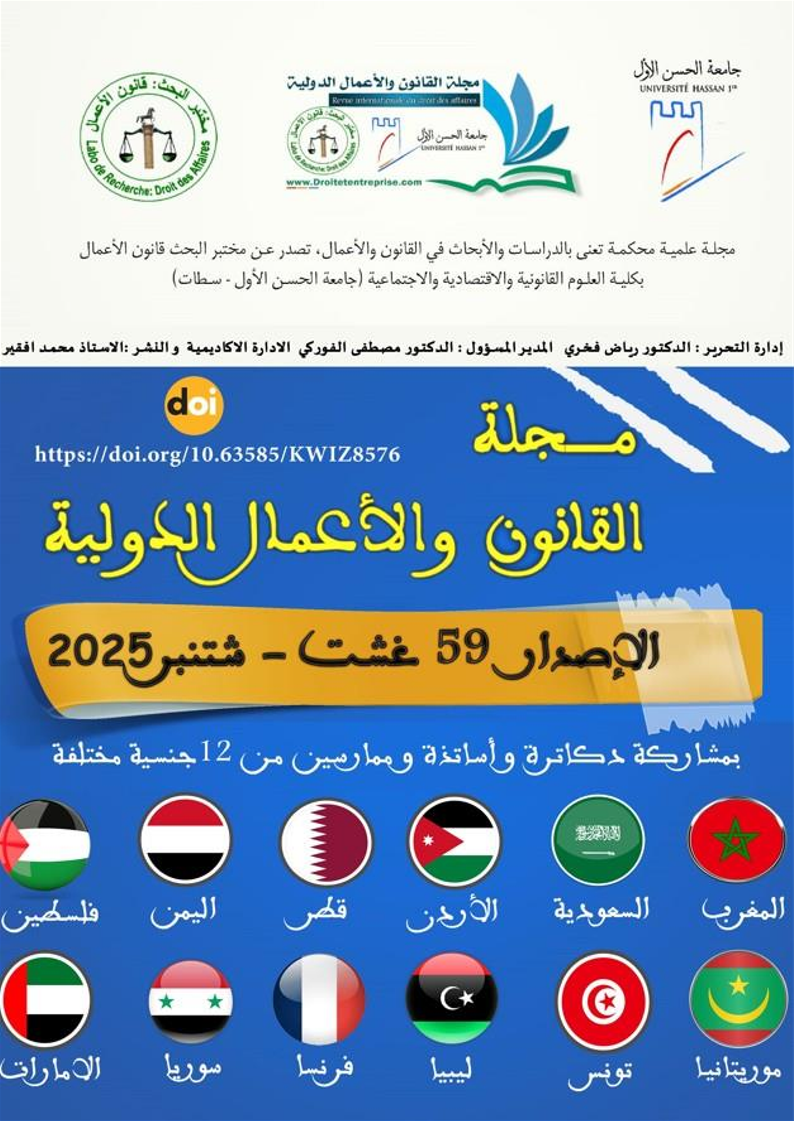 هذا البحث منشور في مجلة القانون والأعمال الدولية الإصدار رقم 59 الخاص بشهر غشت / شتنبر 2025