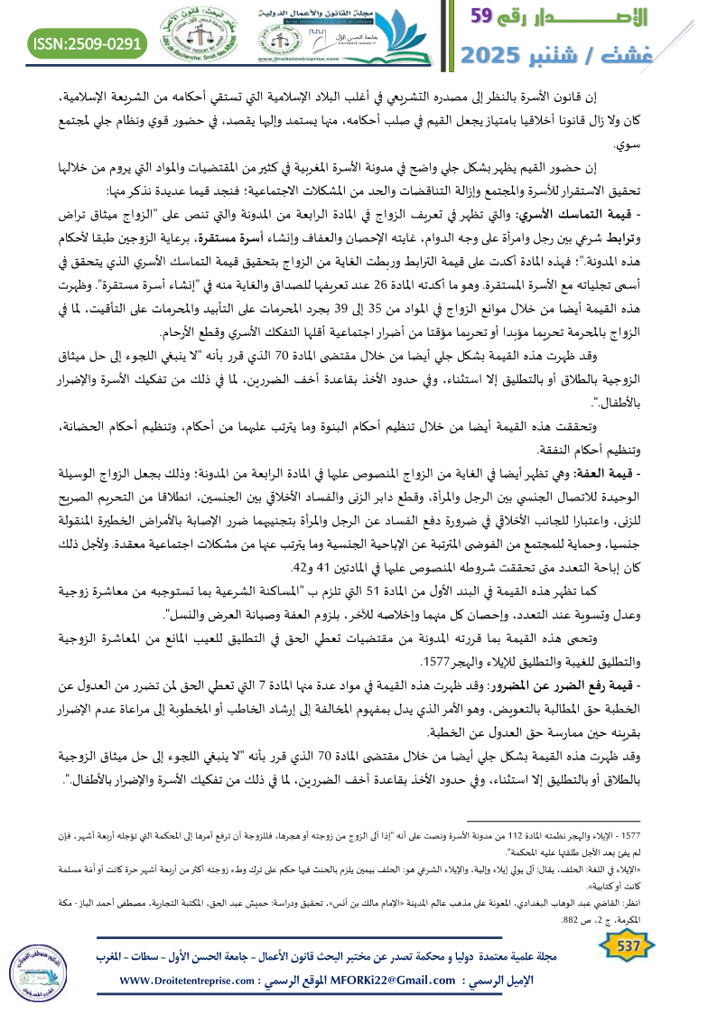 منظومة القيم بين الثابت والمتغير في أحكام قانون الأسرة والقانون الجنائي