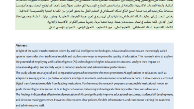 توظيف تقنيات الذكاء الاصطناعي في تحسين جودة التعليم العالي: نحو نموذج مؤسسي ذكي ومستدام “Employing Artificial Intelligence Technologies to…