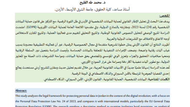 الخصوصية الرقمية وحماية البيانات الشخصية: دراسة مقارنة بين القانون الأردني والتشريعات الدولية في ضوء الأمن السيبراني Digital Privacy and…