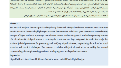 حجية الدليل الرقمي في إثبات المعاملات المدنية وفق نظام الإثبات السعودي Digital Evidence in Proving Civil Transactions According to the…