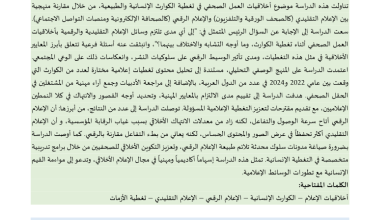 أخلاقيات العمل الصحفي في تغطية الكوارث الإنسانية والطبيعية (دراسة مقارنة بين الإعلام التقليدي والإعلام الرقمي) Journalistic Ethics in Covering Humanitarian…
