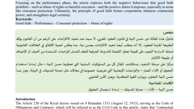 Between Law and Morality: Good Faith in Contractual Obligations – A Legal Analysis بين القانون والأخلاق: حسن النية في الالتزامات…