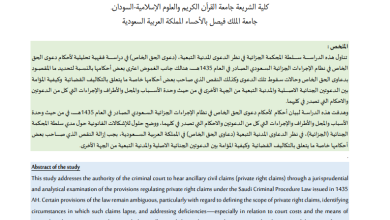 سلطة المحكمة الجزائية في نظر الدعوى المدنية التبعية (دعوى الحق الخاص) “دراسة فقهية تحليلية لأحكام دعوى الحق الخاص في نظام…