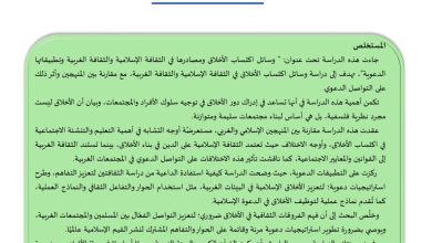 وسائل اكتساب الأخلاق ومصادرها في الثقافة الإسلامية والثقافة الغربية وتطبيقاتها الدعوية ) دراسة مقارنة تحليلية ( Methods and…