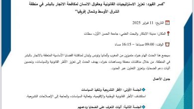 جامعة الحسن الاول بسطات تنظم ندوة علمية حول موضوع تعزيز الاستراتيجيات. القانونية و حقوق الانسان لمكافحة الاتجار بالبشر في منطقة الشرق الأوسط وشمال أفريقيا
