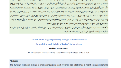 دور القاضي في حماية الحق في التأمين على المرض دراسة تحليلية على ضوء الإجتهادات القضائية في تونس الدكتور حسان غضباني…