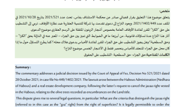 منازعات حق الجزاء المنعقد على الأملاك الوقفية تعليق على قرار قضائي عدد 521/2021 صادر عن محكمة الاستئناف بفاس بتاريخ…