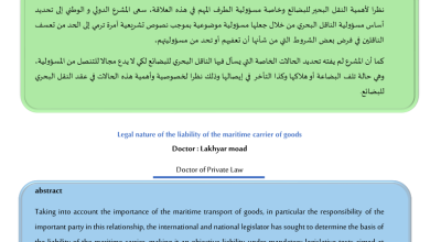 الطبيعة القانونية لمسؤولية الناقل البحري للبضائع في ضوء الاتفاقيات الدولية ومدونة التجارة البحرية المغربية الدكتور…