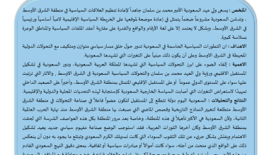 دور السعودية فى تشكيل المستقبل الاقليمي (رؤية محمد بن سلمان للشرق الاوسط والتحولات السياسية السعودية فى الشرق الاوسط) The role…